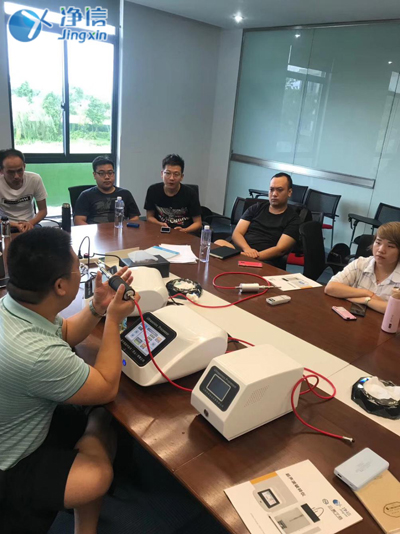 凈信資深工程師沈工在講解儀器實(shí)際操作問題
